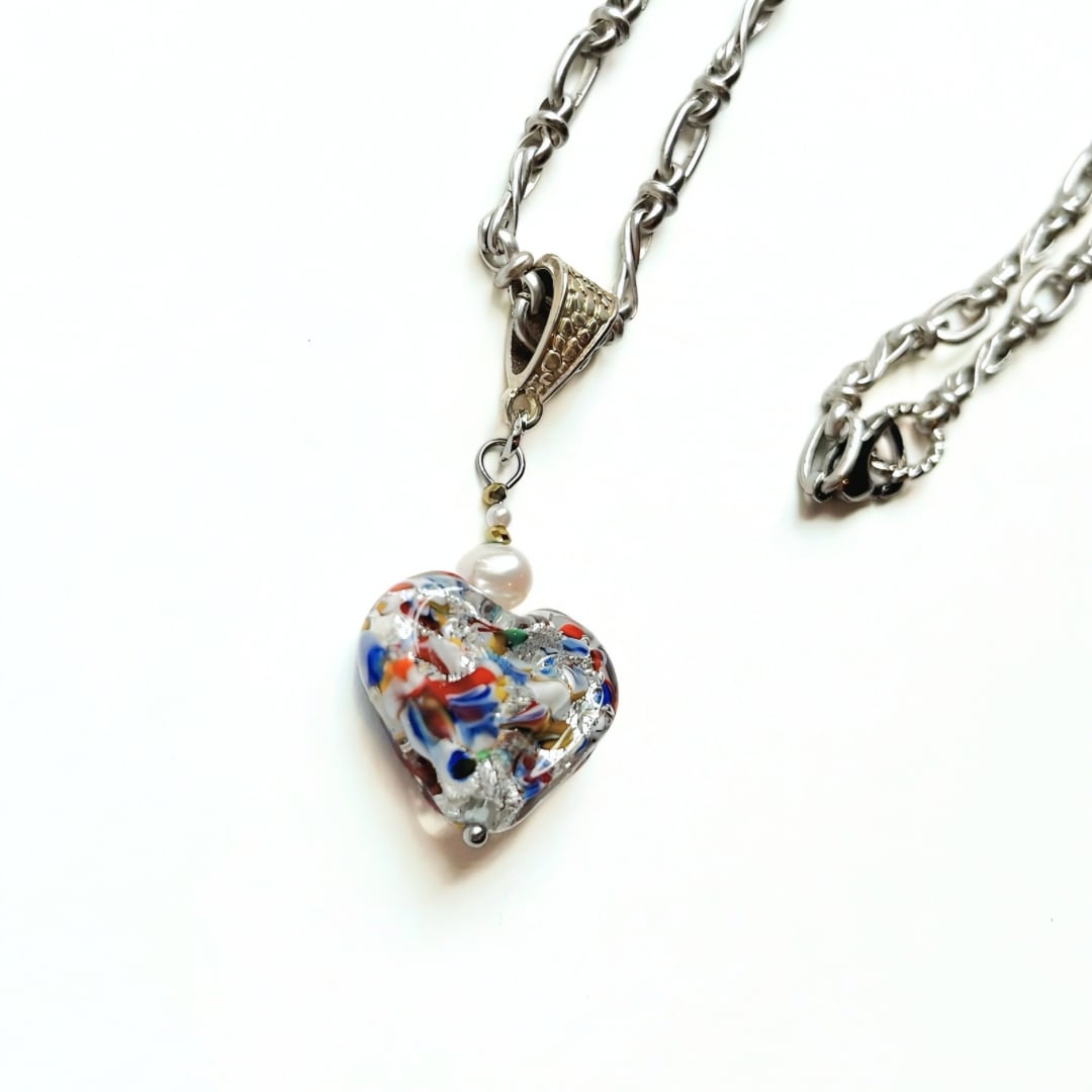 銀箔のクリムトスタイルビーズが主役のネックレス