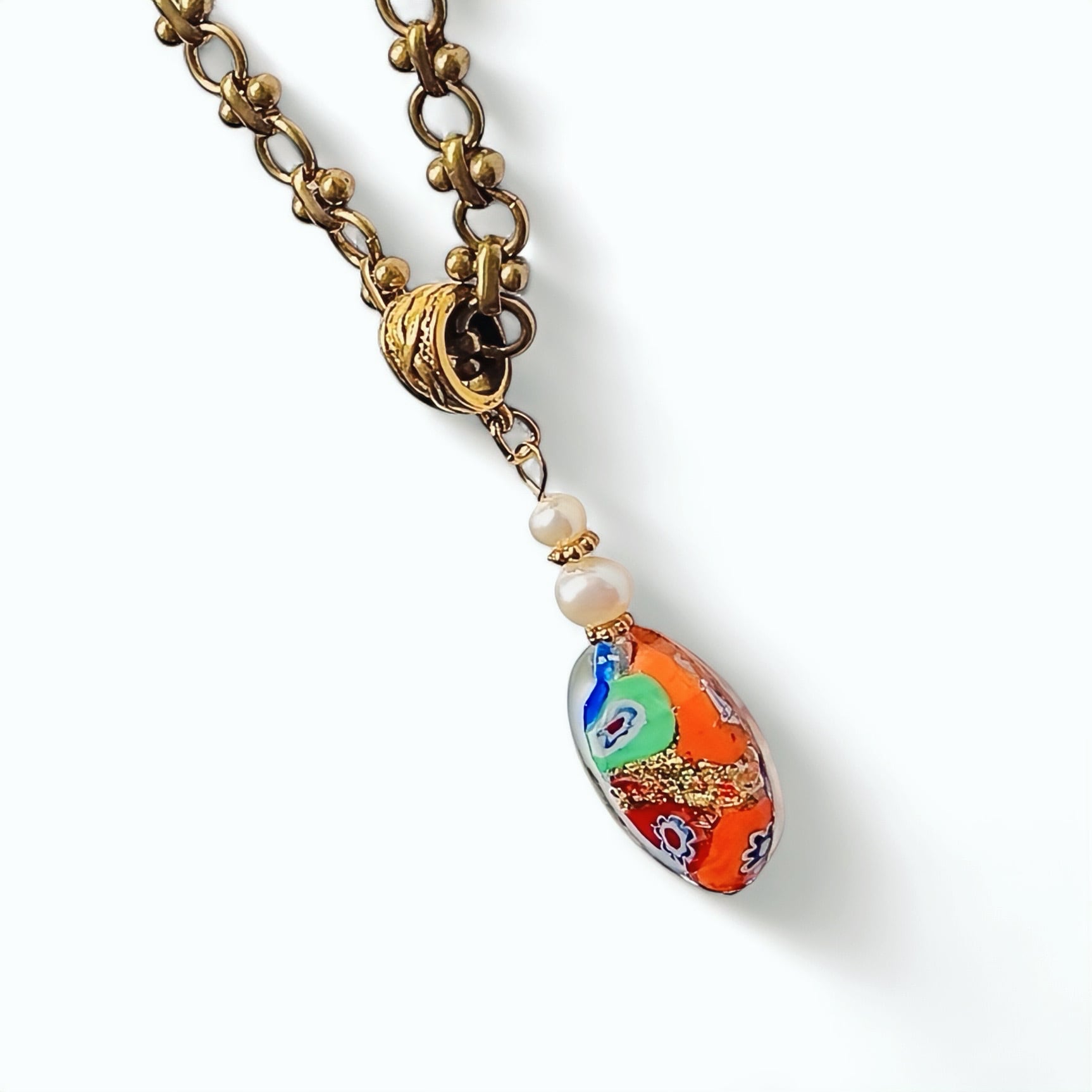 クリムトの黄金時代を連想するリーフ型ベネチアンビーズネックレス