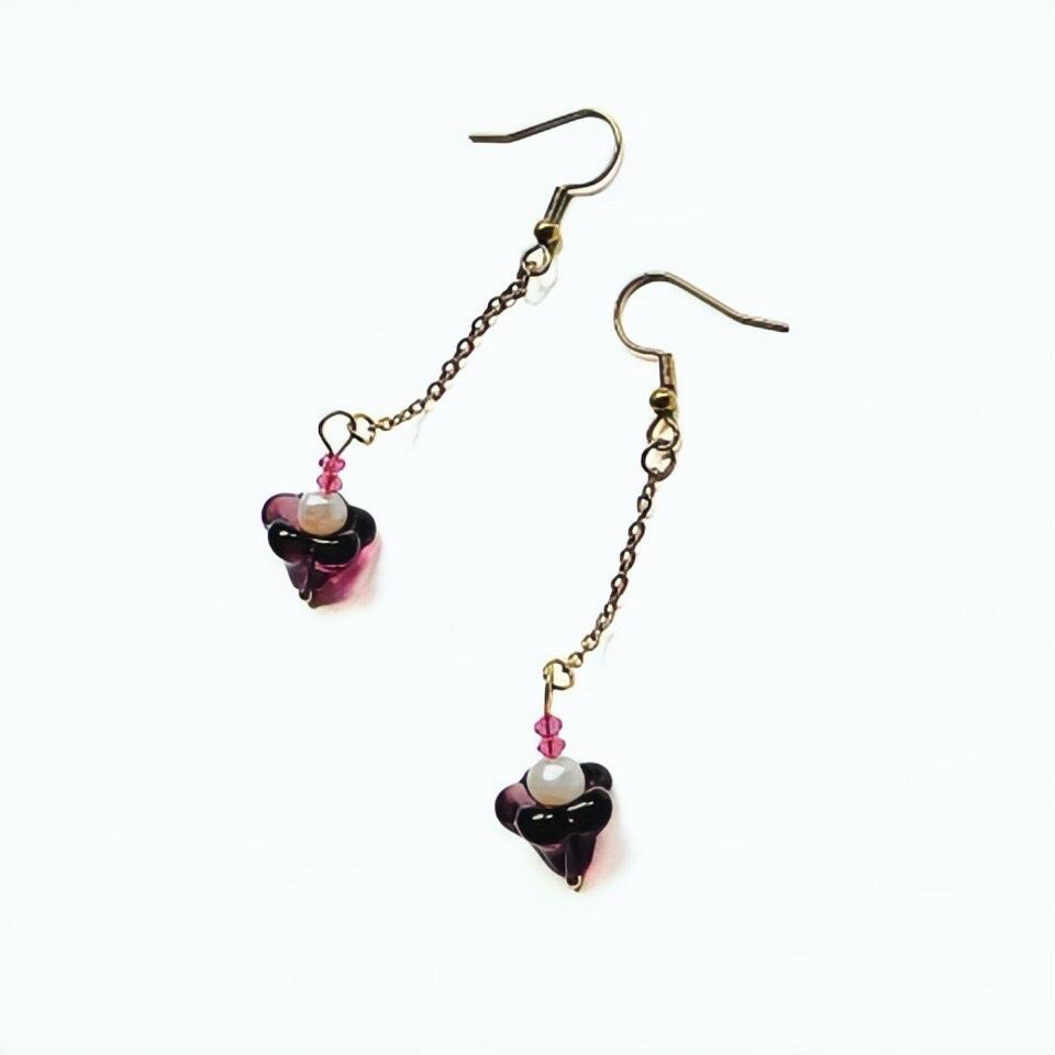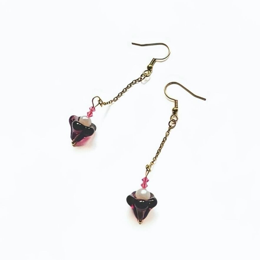 淡い透明感が美しい紫の花びらはチェコビーズ 小さなピンクの花粉はスワロフスキー