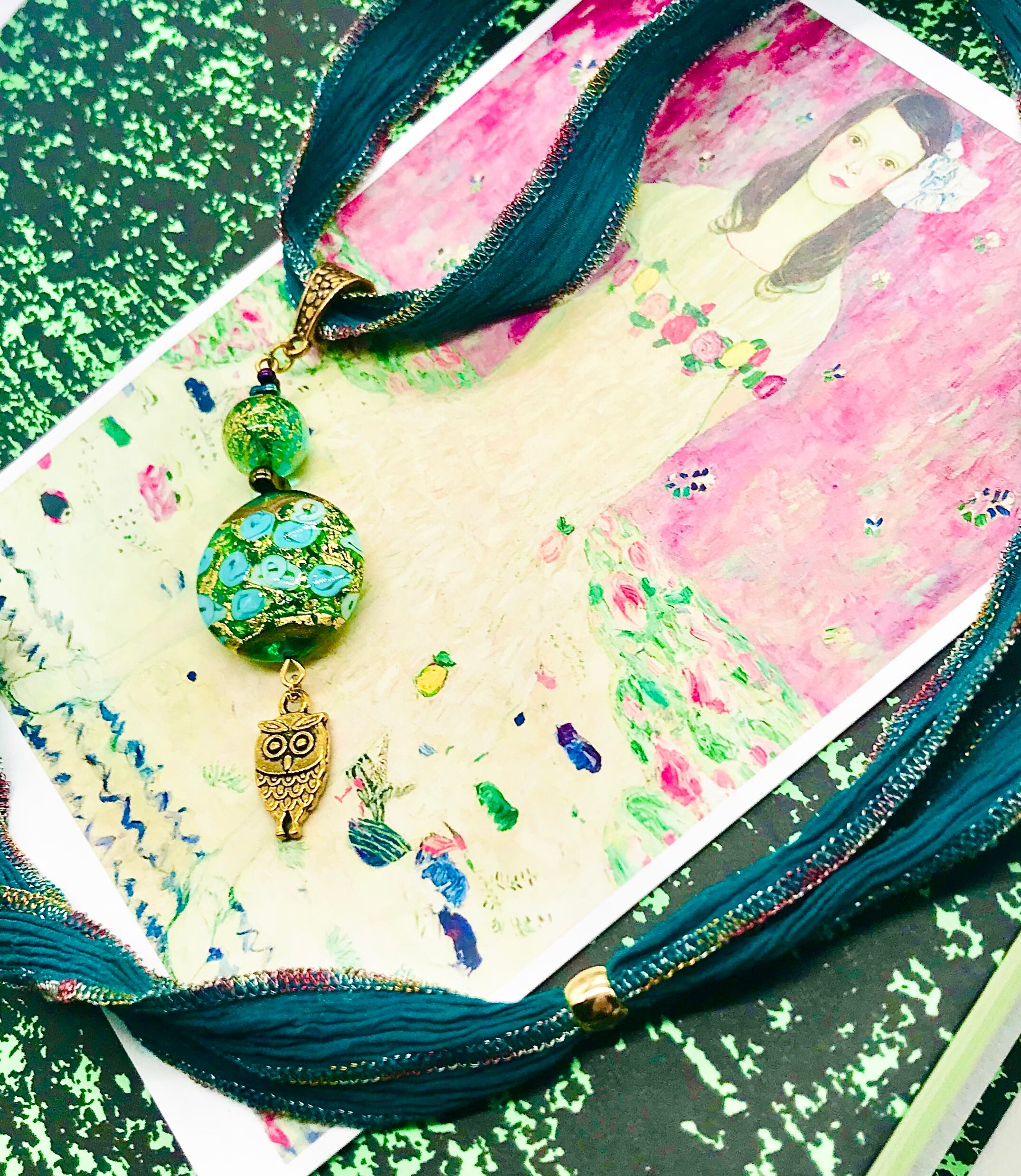 上にもグリーンの金彩のハンドメイドベネチアンビーズを乗せました。