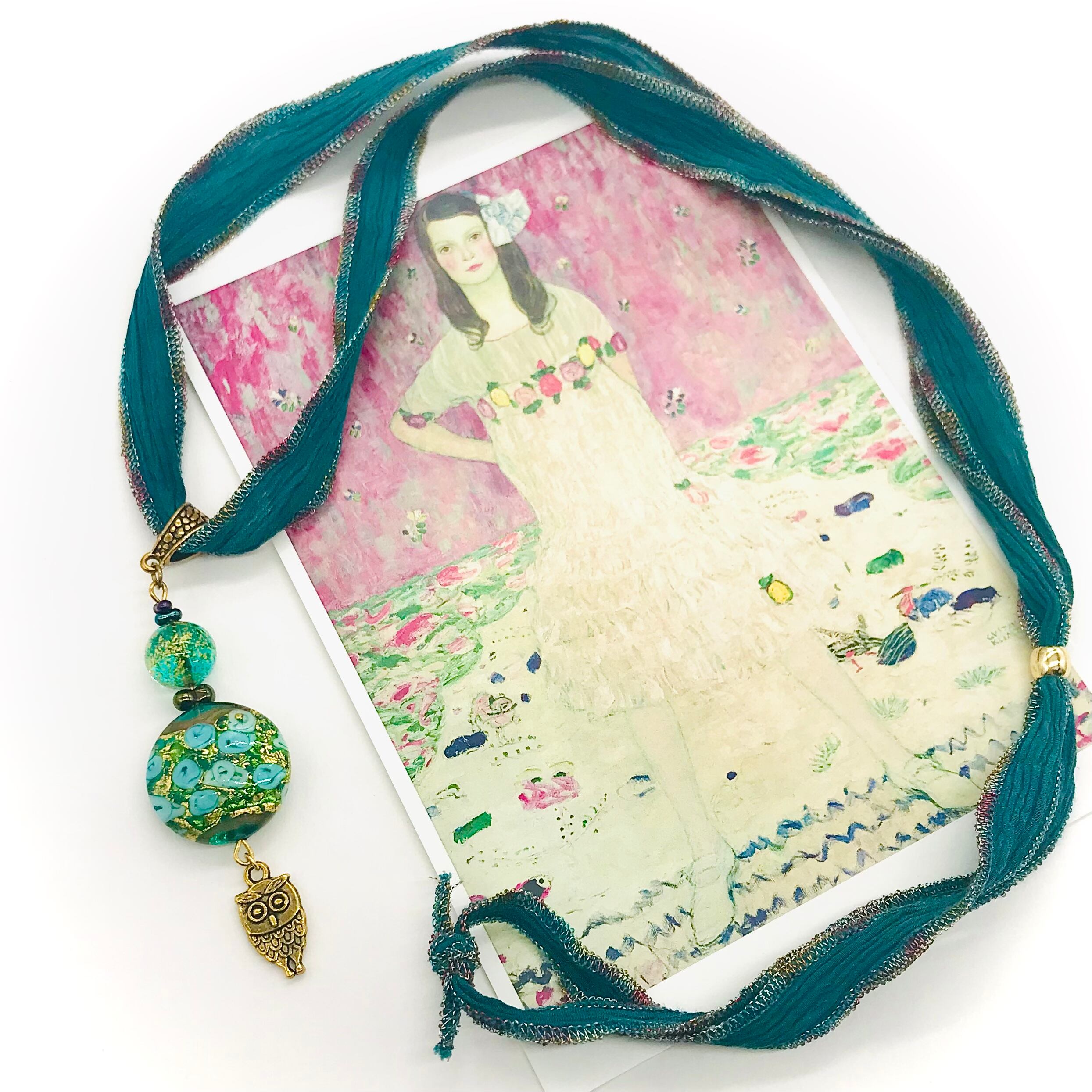 リボンとチャームでいつもおめかし。名画のポストカードもお付けします。ギフトにもピッタリ。