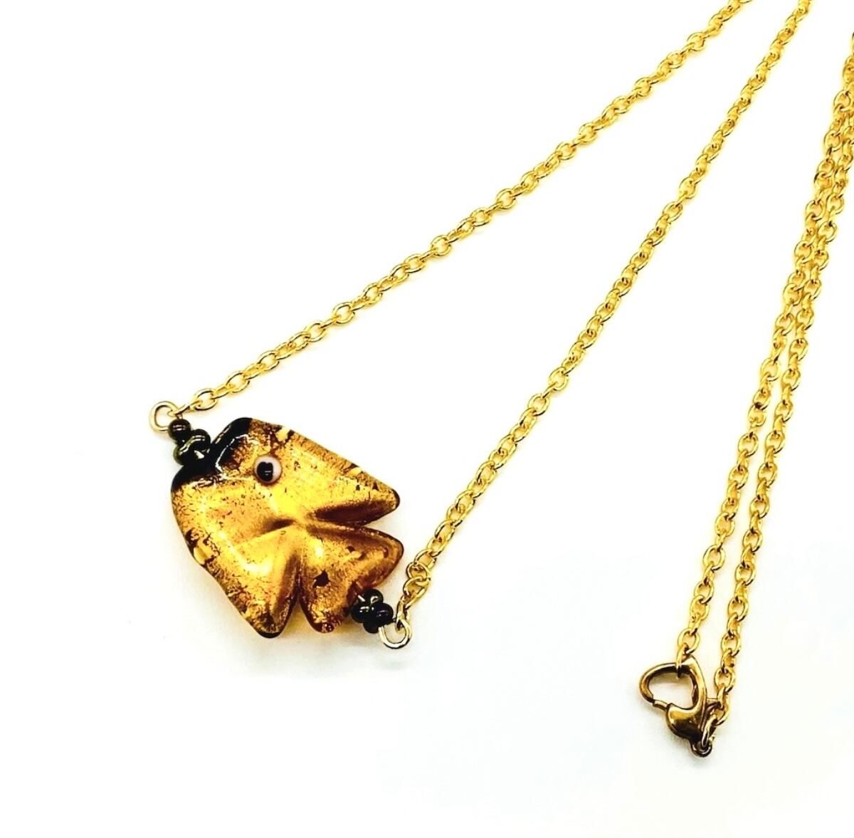 可愛くも華やかなゴールドフィッシュのベネチアンビーズネックレス