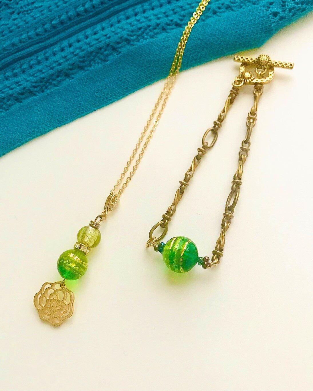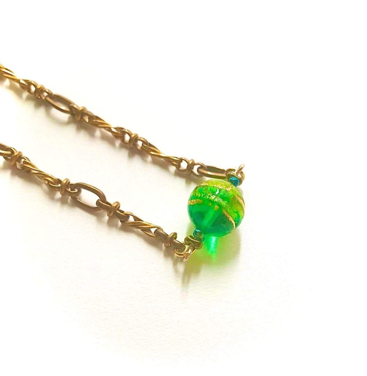 みずみずしいエメラルドグリーンに純金製のラインが映える、ベネチアンビーズのブレスレット
