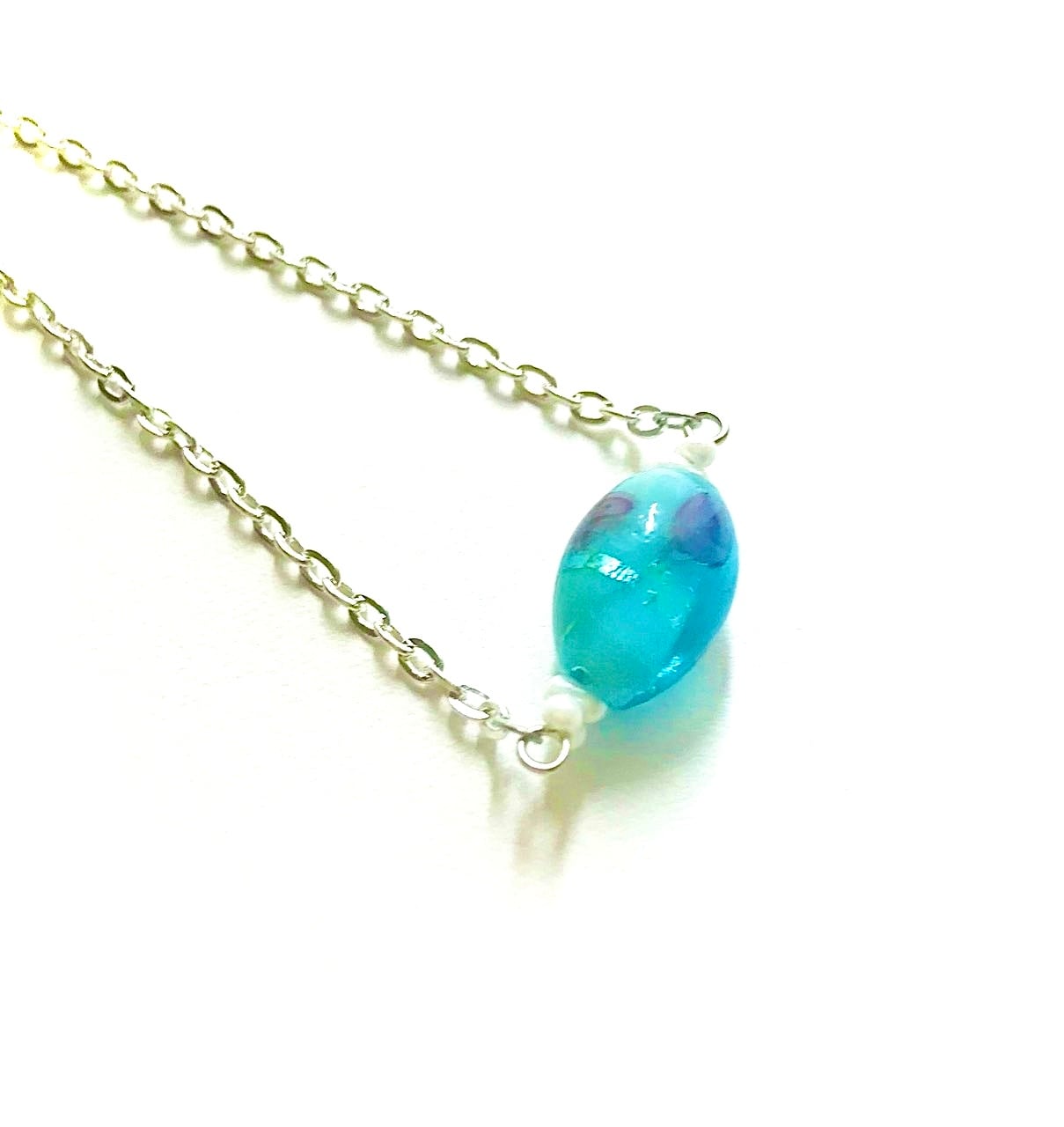 ベネチアンビーズは銀彩の模様と、ベネチアの運河をも思い起こさせるブルーがポイント