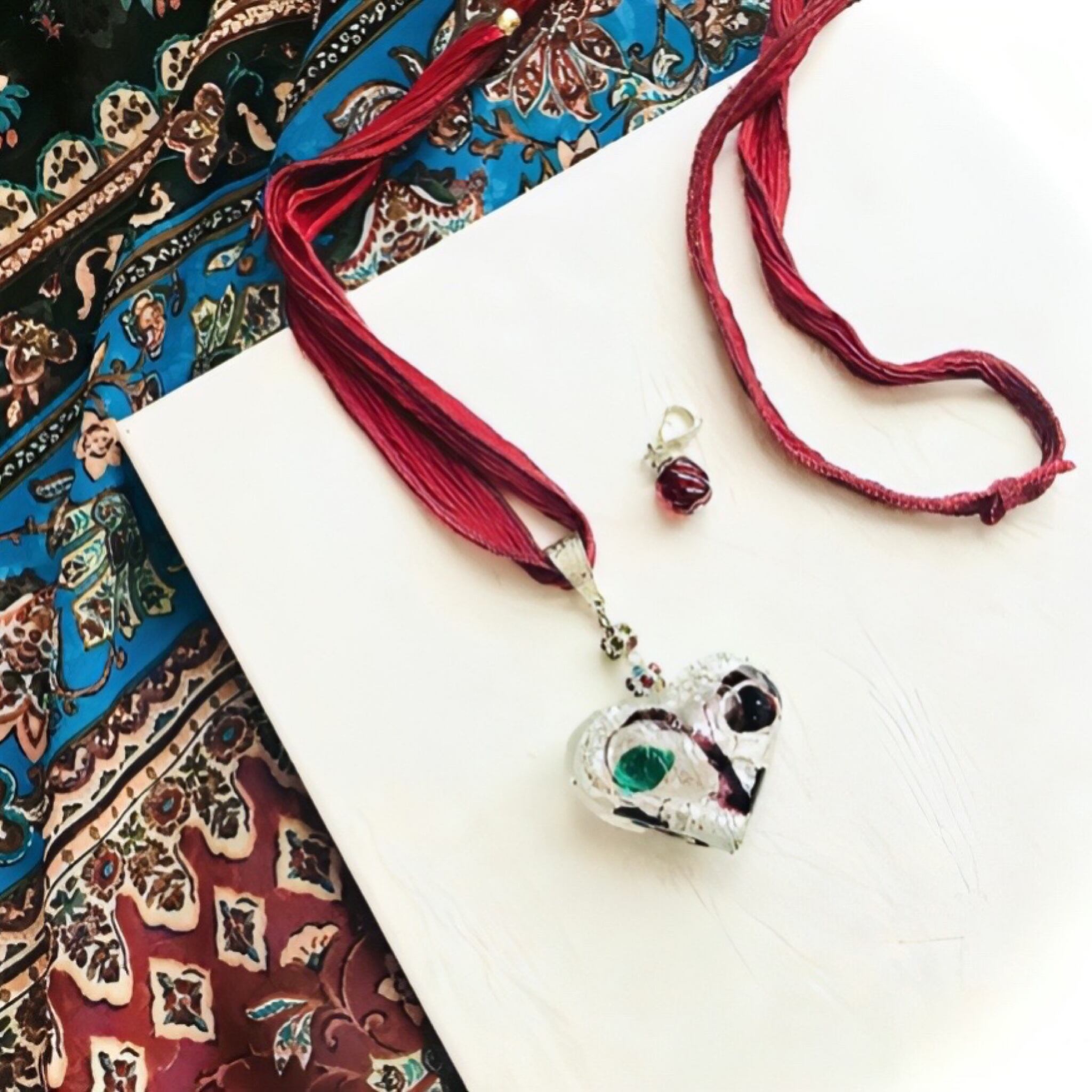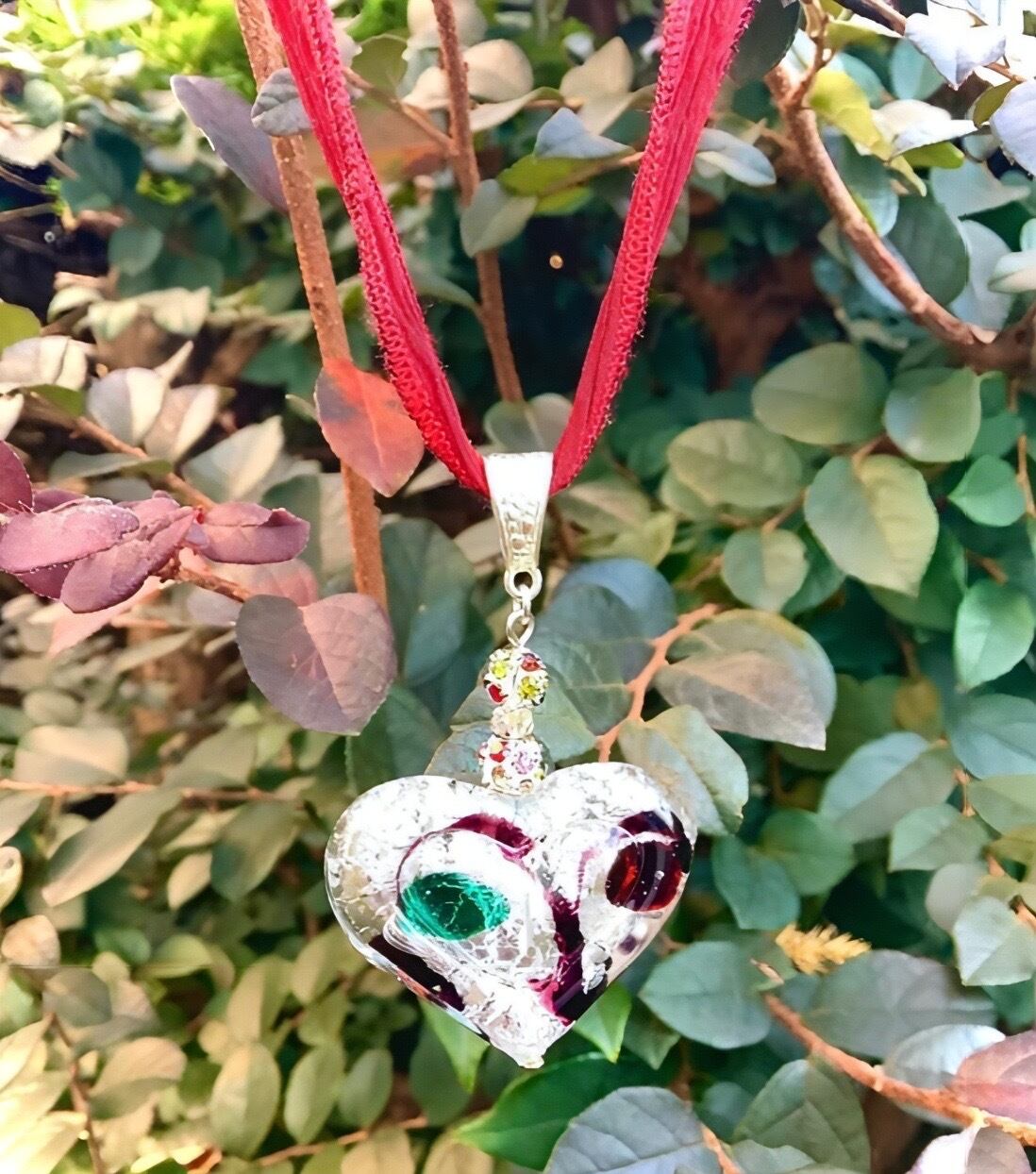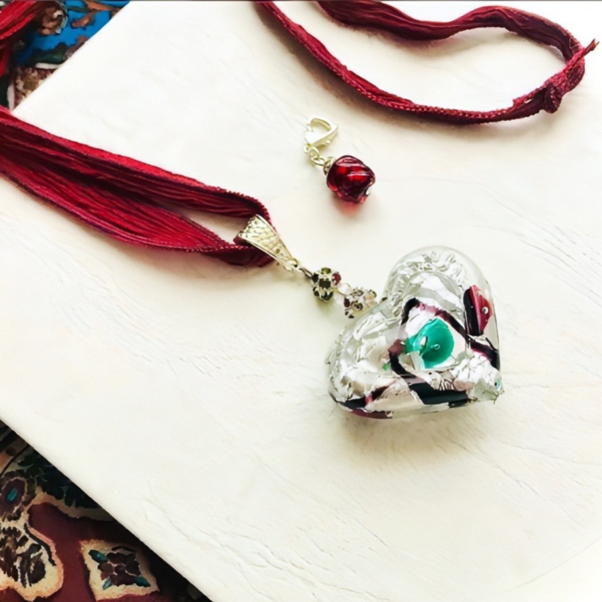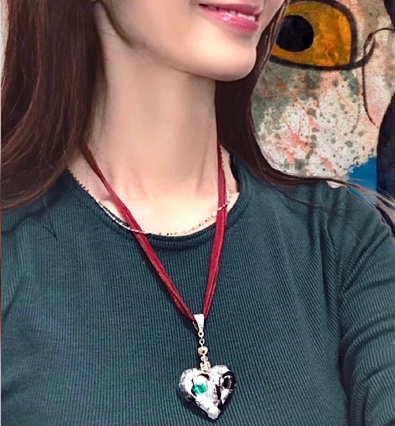 インスタグラム動画 “鳥と赤い実”のビッグハートネックレス。