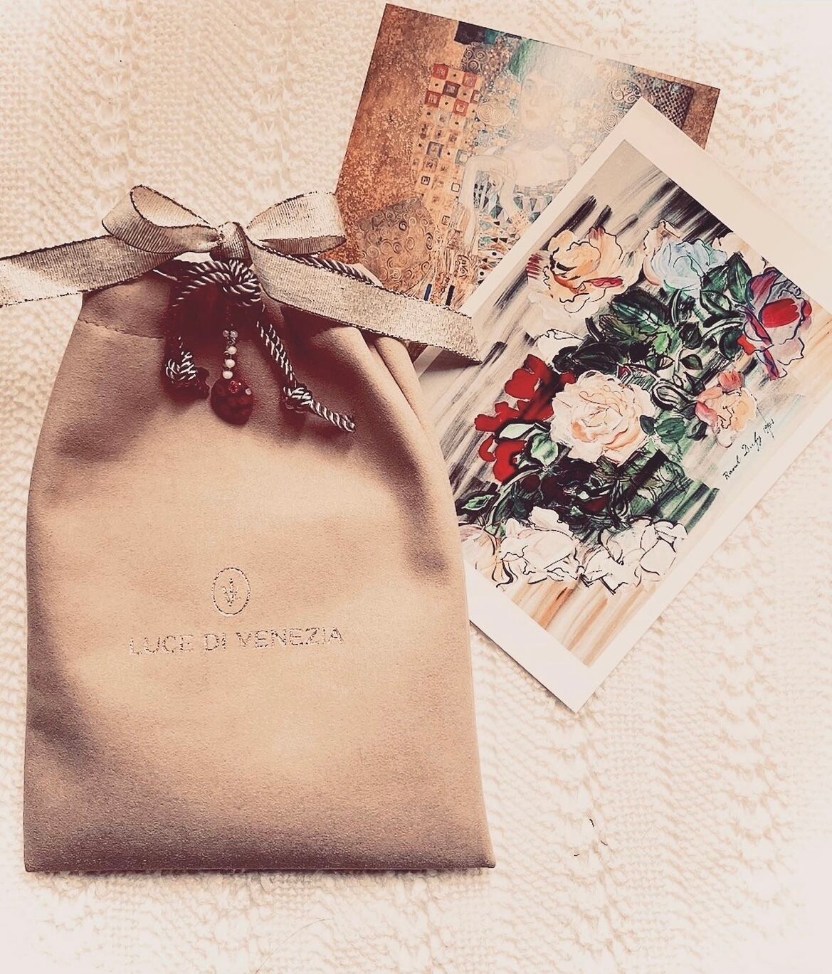 リボンとチャームでいつもおめかし。名画のポストカードもお付けします。ギフトにもピッタリ。