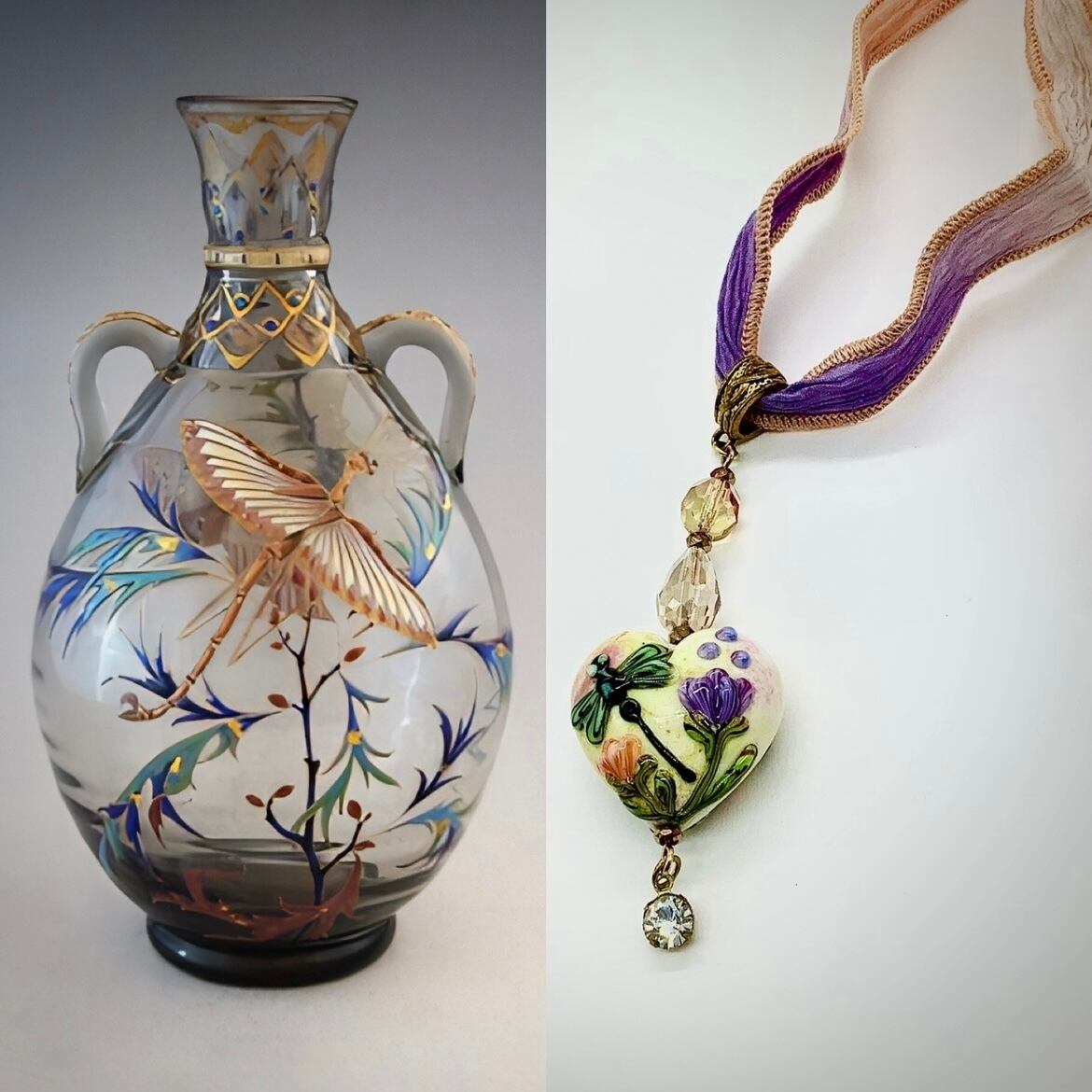 秋のお花が咲く美しい庭で飛び回るトンボは、エミールガレやラリックも愛したモチーフ