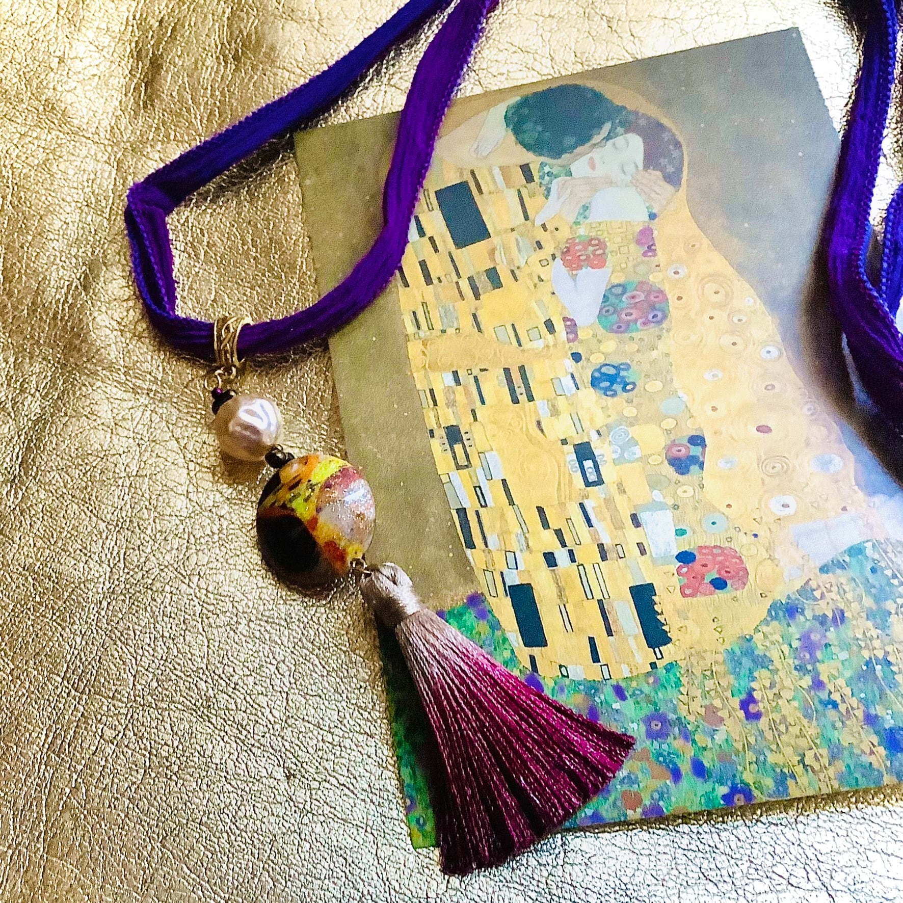 クリムト黄金期の代表作“接吻”をイメージした、ベネチアンビーズネックレスです