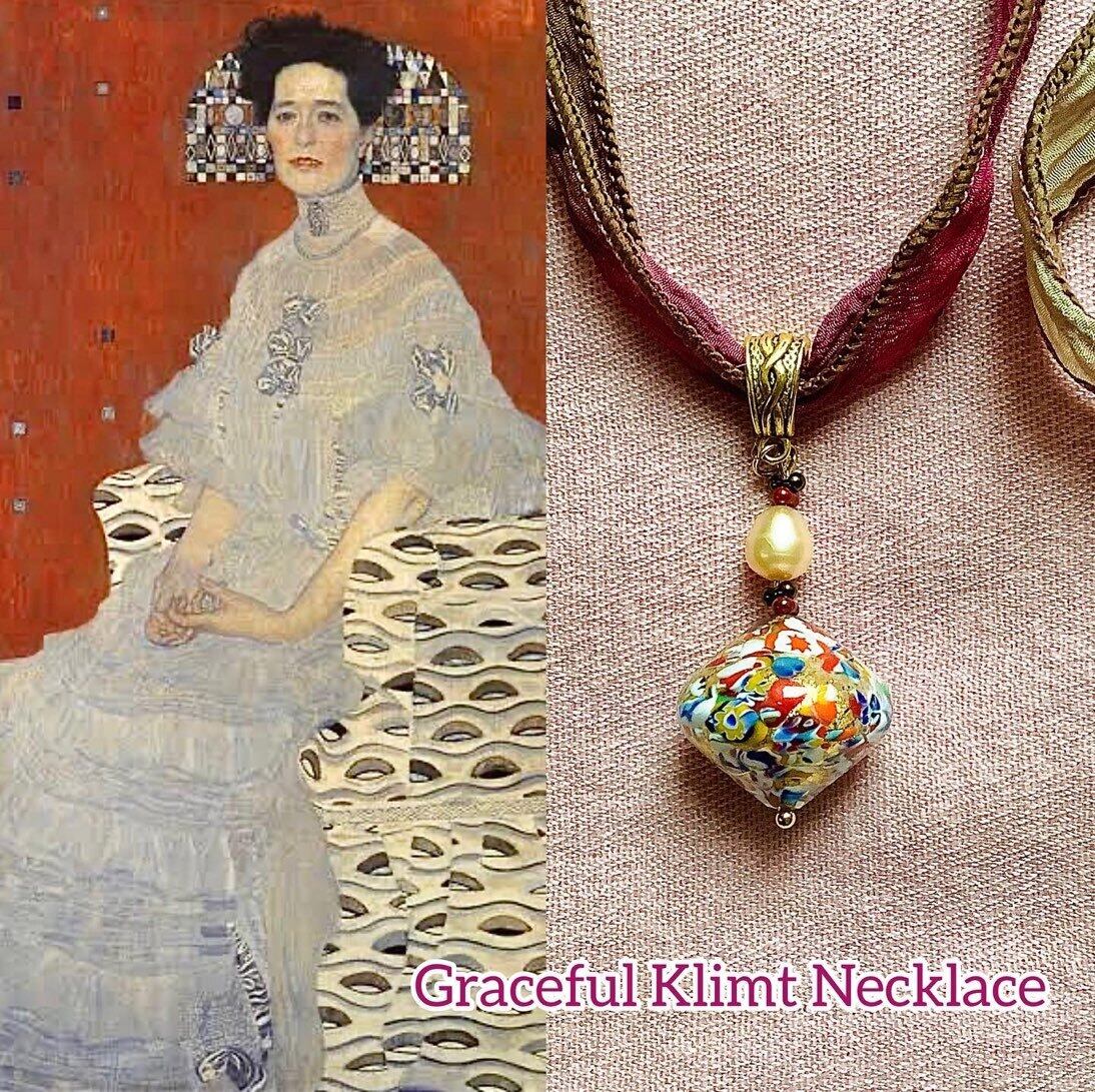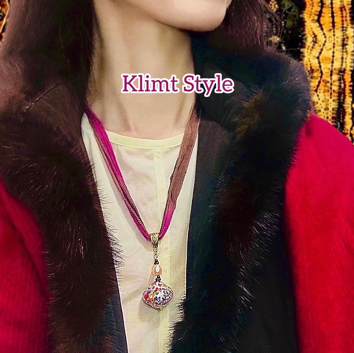 大人の女性の魅力を引き立てる、ベネチアンビーズネックレスです。クリムトの“フリッツァ・リードラーの肖像”にインスパイアされて。