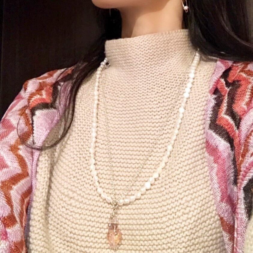 胸元で優しいインパクトが揺れて、ひときわ明るいエレガンスが生まれます